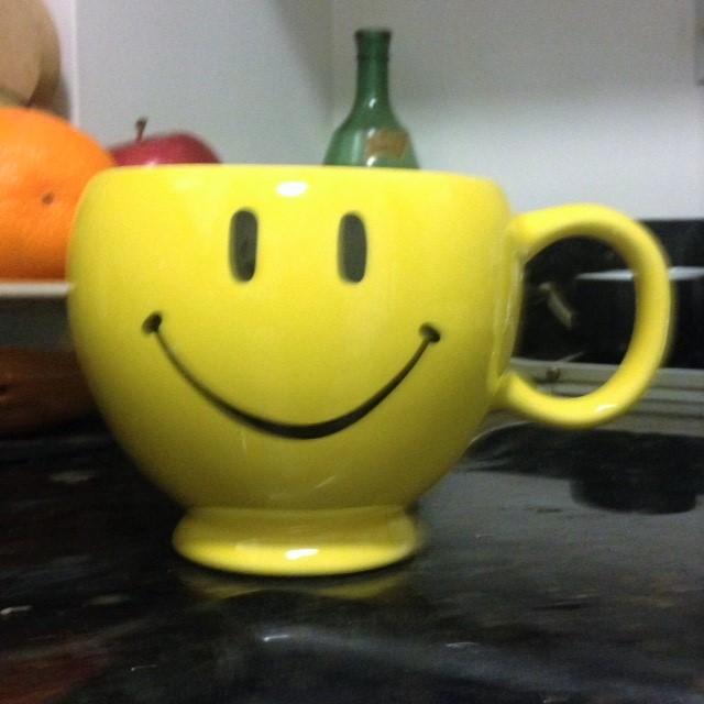 BTW – While I was at the Housing Works in Tribeca, and feeling quite amused at the fact that a song that had been playing in my head was now available to me for a dollar, this mug was watching me. I hate those stupid happy faces, but it made me smile, so it now sits on my kitchen counter.