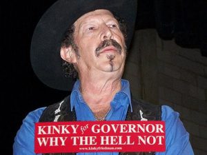 Two weeks ago I wrote about Leon Redbone (this is so embarrassing), mentioning that he had run for an office in Texas, and I quoted him as saying that he was “too young for Medicare and too old for women to care.” Then the other evening, while in the shower from where all ideas originate, it hit me why I could not find the information online to back up this distinct memory. It was not Leon Redbone at all. It was Kinky Friedman. I should have known better. Kinky is a country musician and satirist whose name I would often see on marquees in downtown Manhattan, but he’s a Texas boy who has run for Justice of the Peace and for Governor of Texas. He lost both. Leon Redbone did write “Seduced” however.